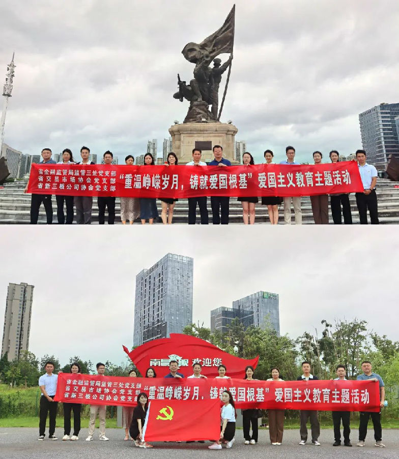 為扎實推進黨紀學習教育走深走實,引導支部黨員增強黨性修養和宗旨意識,永葆“趕考”的清醒和堅定。4月25日,江西省交易市場協會黨支部與省地方金融管理局監管一處黨支部聯合開展“學黨史 守黨紀 踐初心”暨“3?23”警示教育主題黨日活動,集體前往南昌八一起義紀念館、賀龍指揮部舊址參觀學習。省地方金融管理局監管一處黨支部書記李四旺、省交易市場協會執行會長劉祖國參加活動。