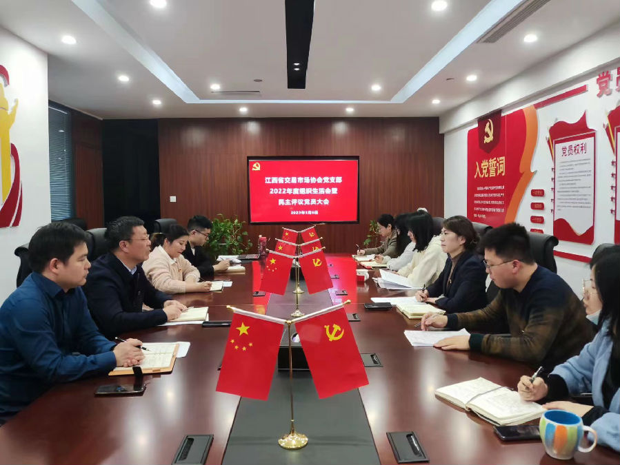 近日,江西省交易市場協會黨支部召開2022年度組織生活會暨民主評議黨員大會。會議由支部書記黃莉主持,支部全體黨員(含預備黨員)參加,支部黨員發展對象、入黨積極分子列席,協會執行會長、江西聯交運公司總經理劉祖國以普通黨員身份參會。
