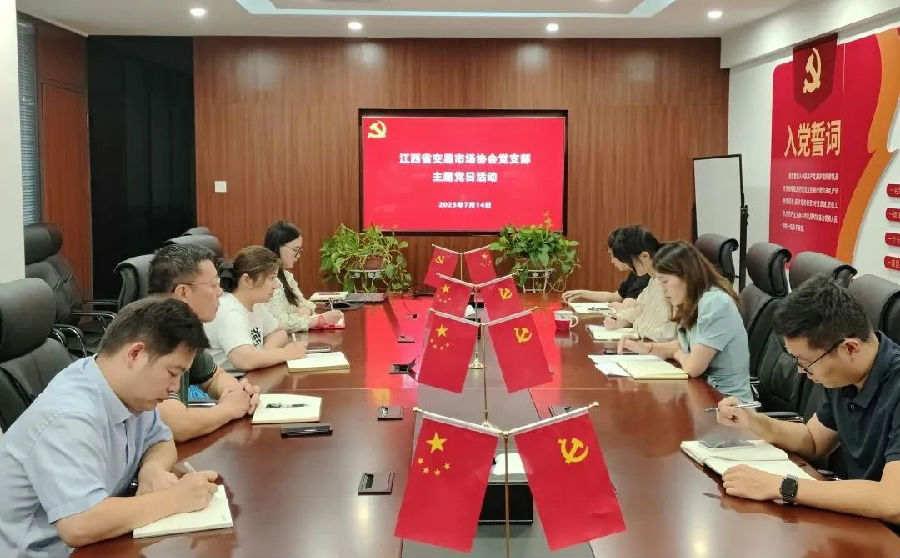 7月14日,江西省交易市場協會黨支部召開“感悟思想偉力 凝聚力量前行”主題黨日活動。會議由支部書記黃莉主持,協會執行會長、省聯交運公司董事、總經理劉祖國同志出席會議,支部全體黨員(含預備黨員)、發展對象、入黨積極分子一同參會。
