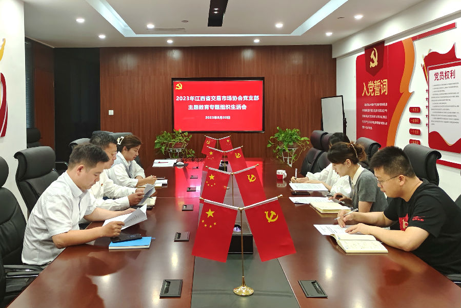 8月30日,江西省交易市場協會黨支部組織召開學習貫徹習近平新時代中國特色社會主義思想主題教育專題組織生活會。會議由支部書記黃莉主持,協會執行會長、省聯交運公司董事、總經理劉祖國以普通黨員身份參加會議,支部全體黨員參加會議。
