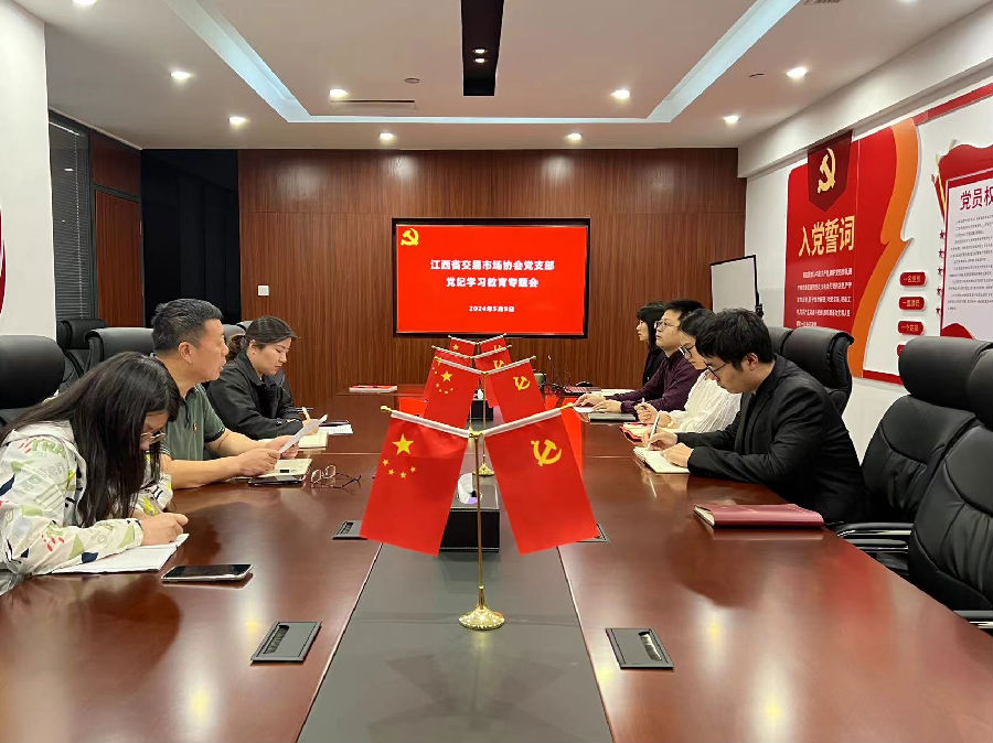 5月9日,江西省交易市場協會黨支部召開黨紀學習教育專題會議,傳達學習習近平總書記有關重要講話和重要指示精神,貫徹落實黨中央及省委和省金融工委關于開展黨紀學習教育的決策部署要求。協會執行會長劉祖國主持會議,支部全體黨員(含預備黨員)、發展對象和入黨積極分子一同參會。