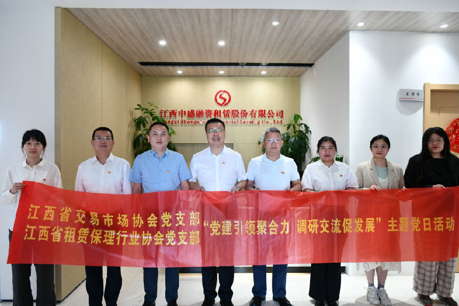 為深入貫徹落實黨的二十大精神,學習貫徹習近平總書記考察江西重要講話精神,充分發揮黨建引領作用,持續推動我省地方金融行業健康穩定高質量發展。近日,江西省交易市場協會黨支部聯合江西省租賃保理行業協會黨支部開展“黨建引領聚合力 調研交流促發展”主題黨日活動,先后赴江西中盛融資租賃股份有限公司、葦禾國際商業保理有限公司調研交流。省交易市場協會執行會長、省聯交運公司董事、總經理劉祖國,省租賃保理行業協會副秘書長萬大宏以普通黨員身份參加活動。