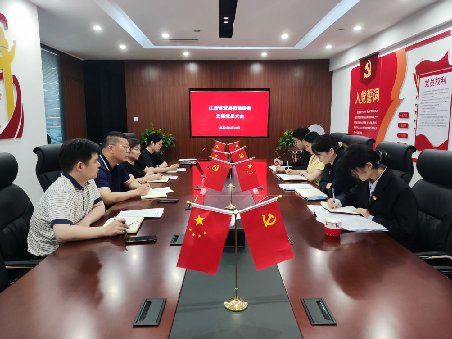 5月30日下午,江西省交易市場協會黨支部召開黨員大會,集中學習了習近平總書記有關重要論述、指示和講話精神和黨內相關文件,討論通過了協會黨支部2022年度黨建具體工作計劃。會議由支部書記黃莉同志主持,支部全體黨員和入黨積極分子參加會議,協會執行會長、江西聯交運總經理劉祖國以普通黨員身份參加了會議。