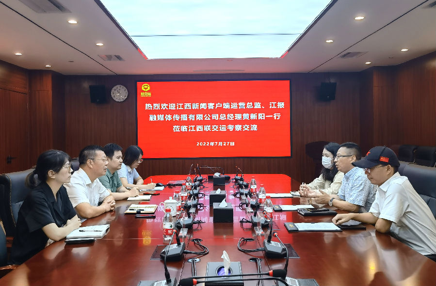 7月27日,江西日報社江西新聞客戶端運營總監、江西江報融媒體傳播有限公司總經理黃新陽一行蒞臨江西聯交運交流座談。公司總經理劉祖國出席座談、市場總監熊保明及業務管理部相關員工參與交流。
