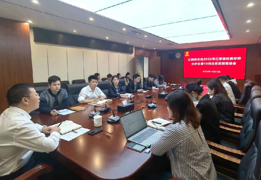 10月12日,江西聯交運召開2022年三季度經營形勢分析會暨10月業務發展推動會。會議全面分析總結了公司前三季度經營管理與業務發展情況,安排部署第四季度及下階段重點工作,公司總經理劉祖國主持會議并講話。