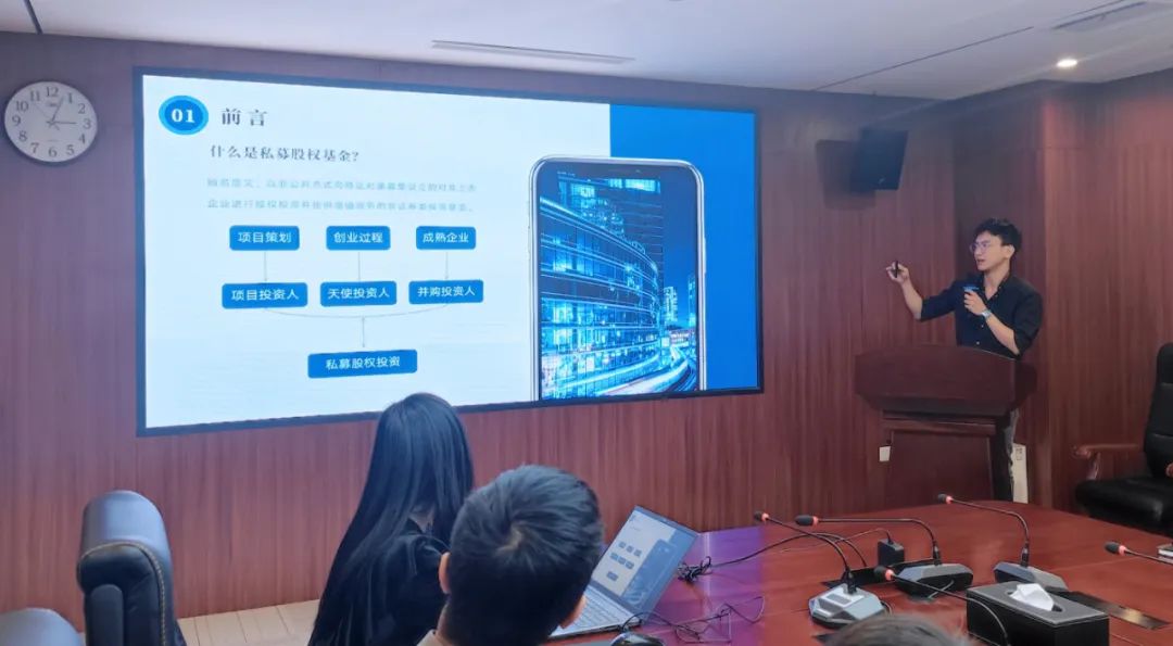 會上,王瑋以基礎知識講解和案例介紹相結合方式,分別從私募股權基金的起源與發展、運作模式與特點、常用的估值方式以及其在經濟中發揮的作用等多方面進行詳細介紹。讓大家對私募股權基金的基礎結構、股權投資“募投管退”及當前國內市場的發展趨勢和社會經濟效益等有了更系統和清晰的認識了解。在分享介紹后,與會人員并結合各自學習工作經驗就部分重點內容和問題進行了補充發言與討論交流。