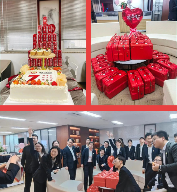 活動最后,全體員工在公司前臺集體合影留念,大家并共同唱響生日歌,許下生日祝福,領取周年慶禮品、積極參與趣味互動小游戲。至此,7周年慶祝活動逐步推向高潮。