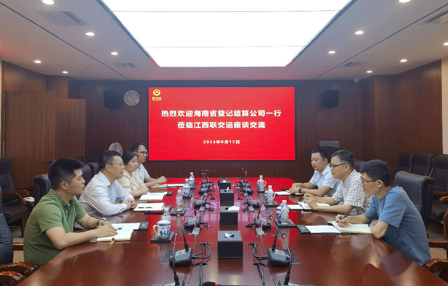 6月12日,海南省登記結算有限責任公司(以下簡稱“海南結算”)董事長文于佳一行蒞臨江西聯交運座談交流,公司董事、總經理劉祖國,副總經理羅莉及相關部門負責同志現場接待并座談交流。
