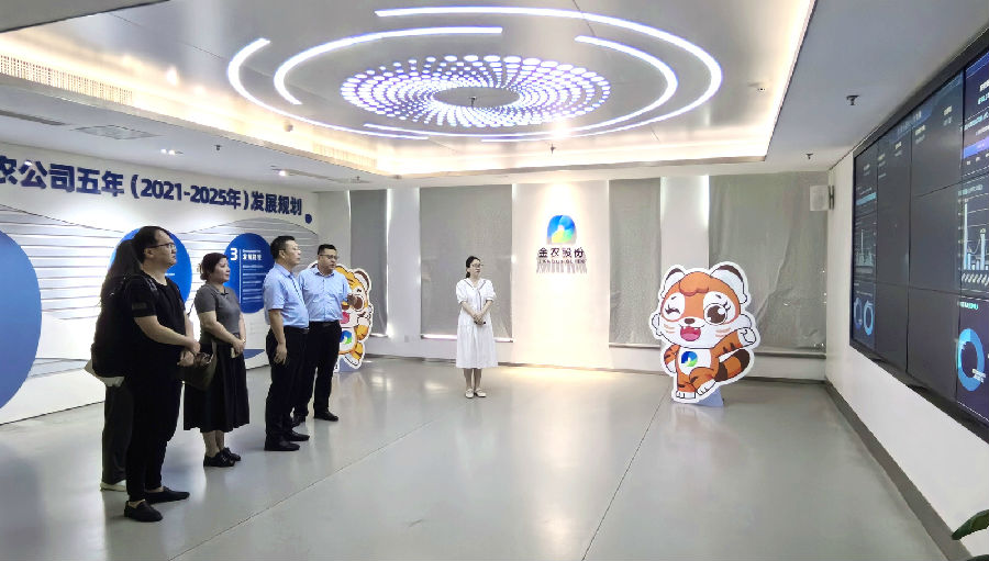 郭朝暉一行首先觀摩了“贛金衛士”監管信息展示大屏,詳細了解公司相關輔助監管平臺建設成果,并對公司在輔助監管等方面的探索實踐工作及良好成效表示高度肯定。