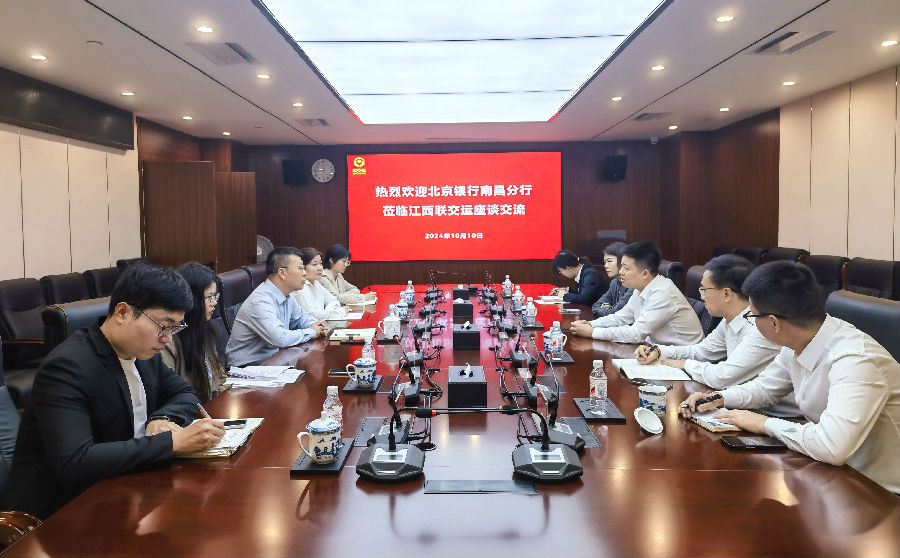 10月10日,北京銀行南昌分行副行長張喆一行蒞臨江西聯交運座談交流,公司董事、總經理劉祖國,副總經理羅莉及業務部門相關人員現場接待并座談交流。