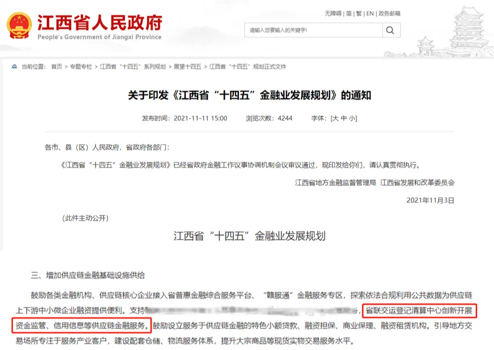 2021年11月3日,《江西省“十四五”金融業發展規劃》印發,指出要牢牢把握服務實體經濟、防控金融風險、深化金融改革三大任務,大力發展科技金融、供應鏈金融,支持江西省聯交運登記結算中心創新開展資金監管、信用信息等供應鏈金融服務。公司迅速響應落實《規劃》指導要求,積極發揮地方金融基礎設施作用,創新發展集中登記結算管理的服務內容和場景應用,推出了資金Ta管家產品。